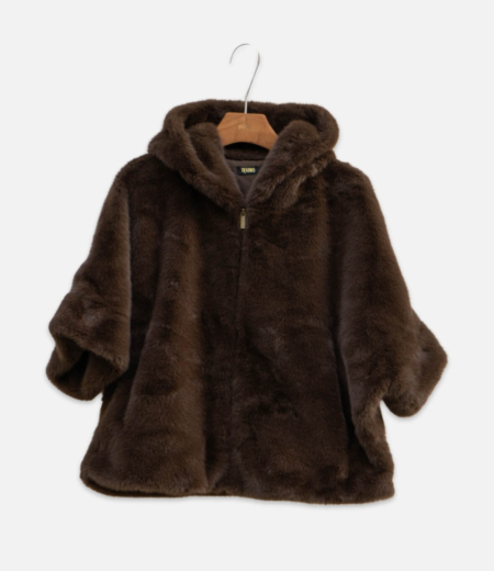 De jas of bodywarmer met capuchon en halflange mouw is prachtig afgewerkt en gevoerd sluiting met rits. Heerlijk zacht en warm. One size.